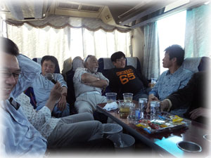 行き帰りのバスの中も相当にぎやかに盛り上がりました。(写真は職員旅行第2班の様子)