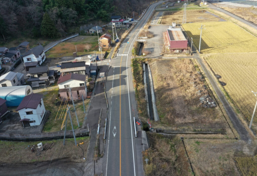 松本糸魚川連絡道路の関連工事であり、西川原地内の側道設置及び水路設置に関する工事です。施工後は現況の田んぼ脇農道、給水路等の移設が完了しました。
