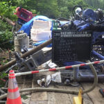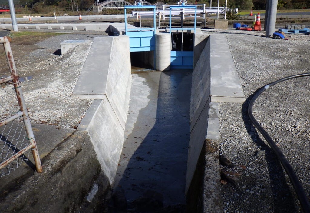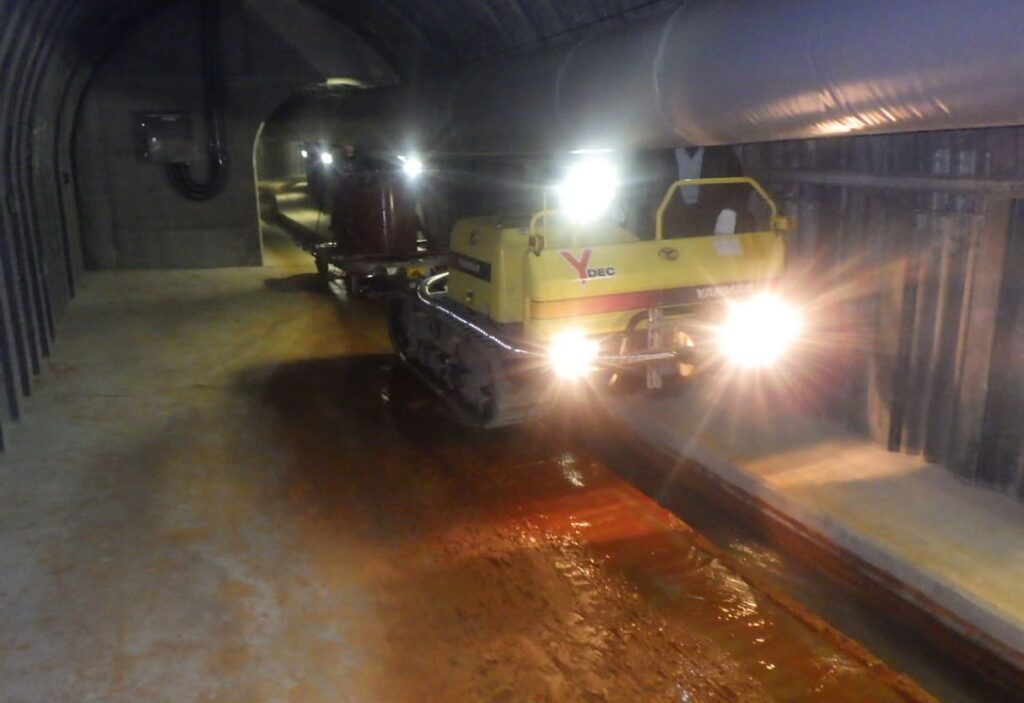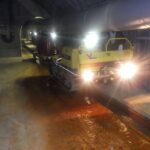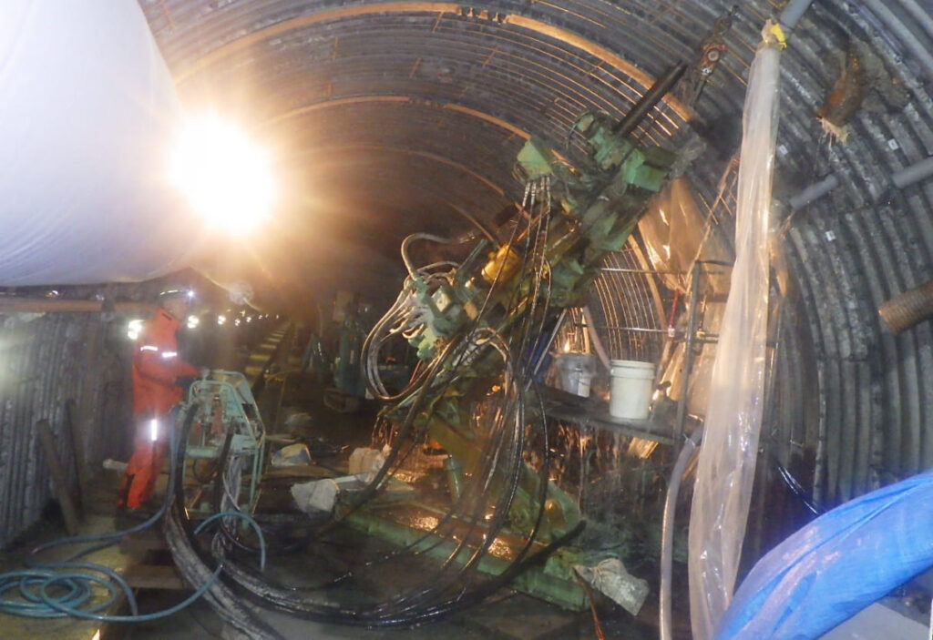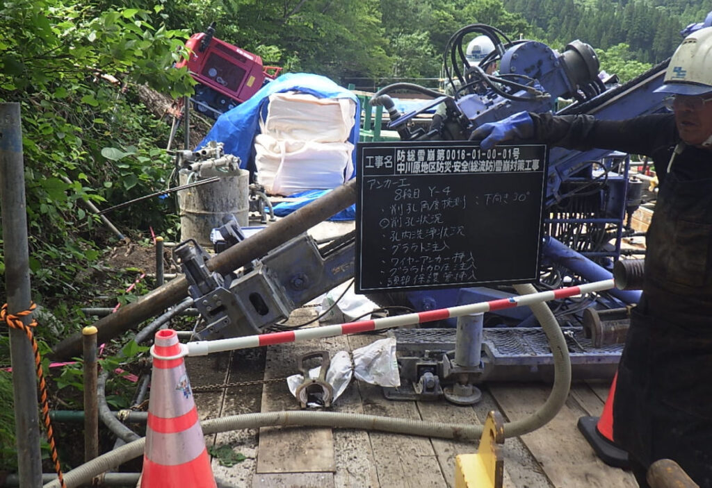 平岩地区と大所集落間の地すべりの防止のため、既設排水トンネル内の集水機能を回復させる工事です。完了後は毎分750リットルの集水行う事ができたため、地すべり防止に貢献出来ました。