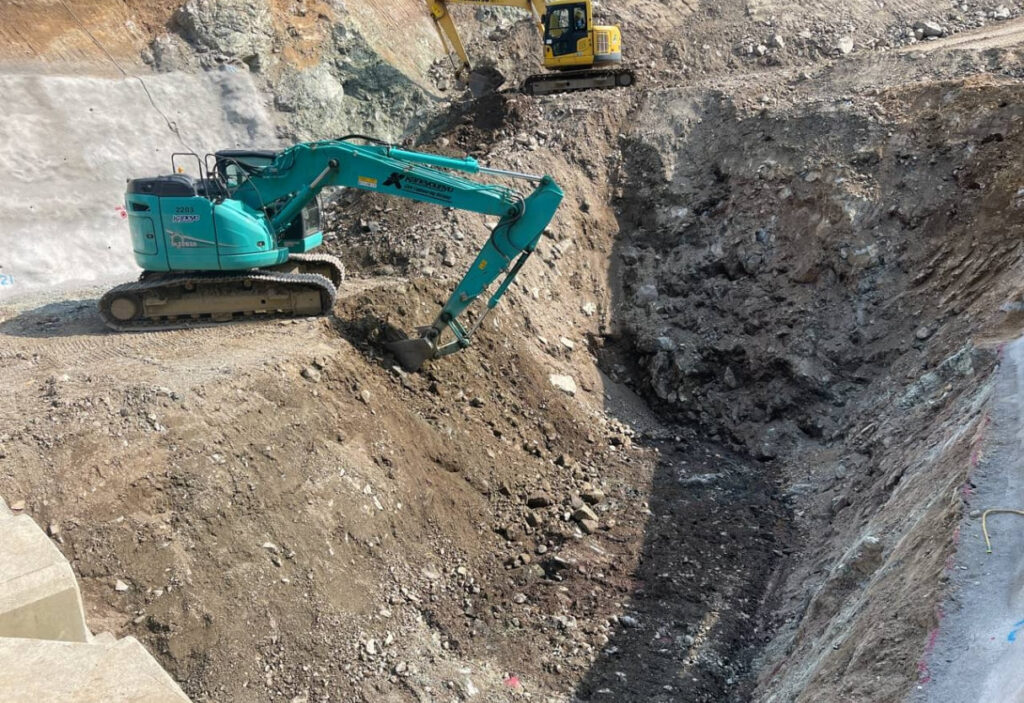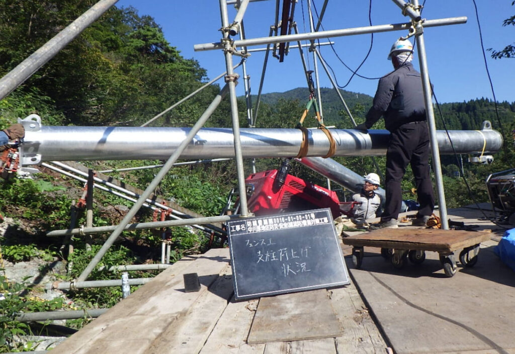 田中川砂防堰堤工事の継続工事で昨年度に引き続き、砂防堰堤工の新設により小滝川流域の土砂・洪水氾濫に対する治水安全度を向上させる工事でした。 現場では湧水による法面崩壊が発生したが適切に排水し工事を施工しました。