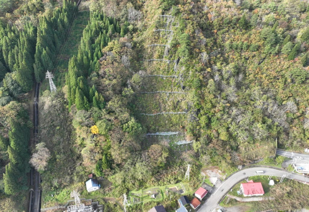 糸魚川静岡構造線による断層破砕作用及びルーズな火山噴出物からなる脆弱な地質構造を有する崩壊地で、周期的に被害を与えている土砂災害の多発地域での法面工事でした。土砂の生産・流出を防止するとともに水土保全機能の高い森林を造成することが目的として行われた工事でした。