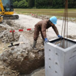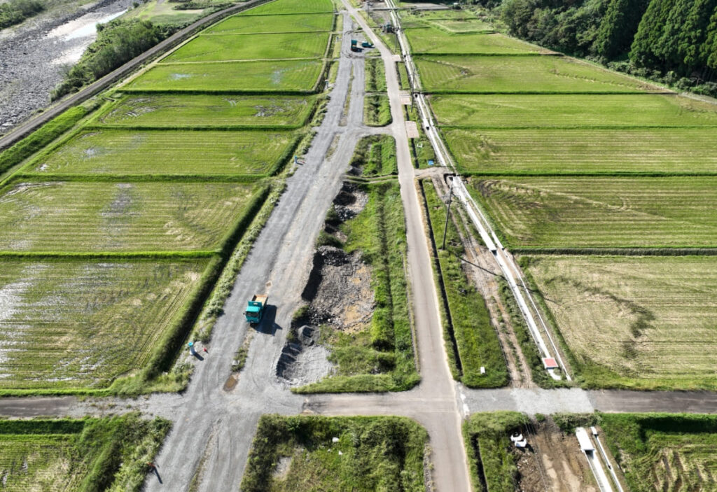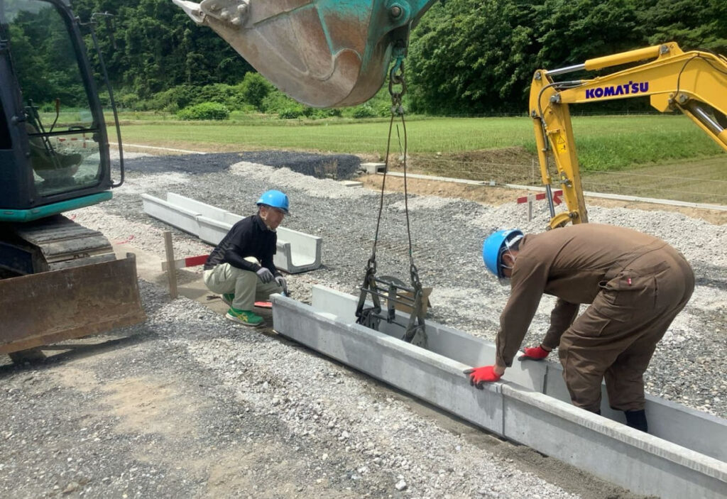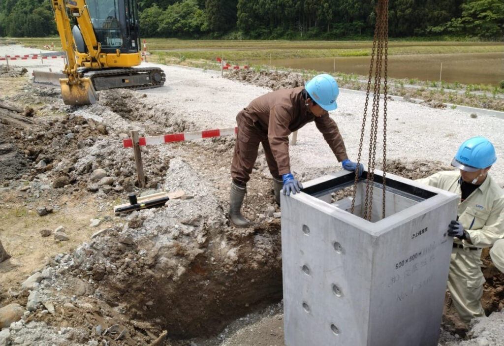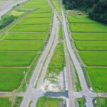 松本糸魚川連絡道路の関連工事であり、西川原地内の側道設置及び水路設置に関する工事です。施工後は現況の田んぼ脇農道、給水路等の移設が完了しました。
