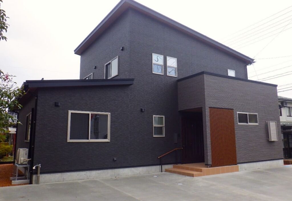 落ち着いた住環境で快適な暮らしができる住宅。玄関のゆったりとした造りや広々リビングが毎日の暮らしを快適にサポート。黒を基調としたモダンなデザインと木のアクセントが目を引く外観です。