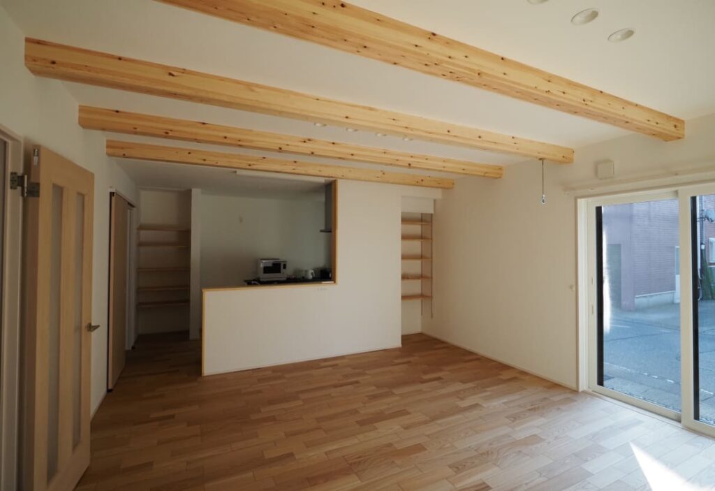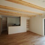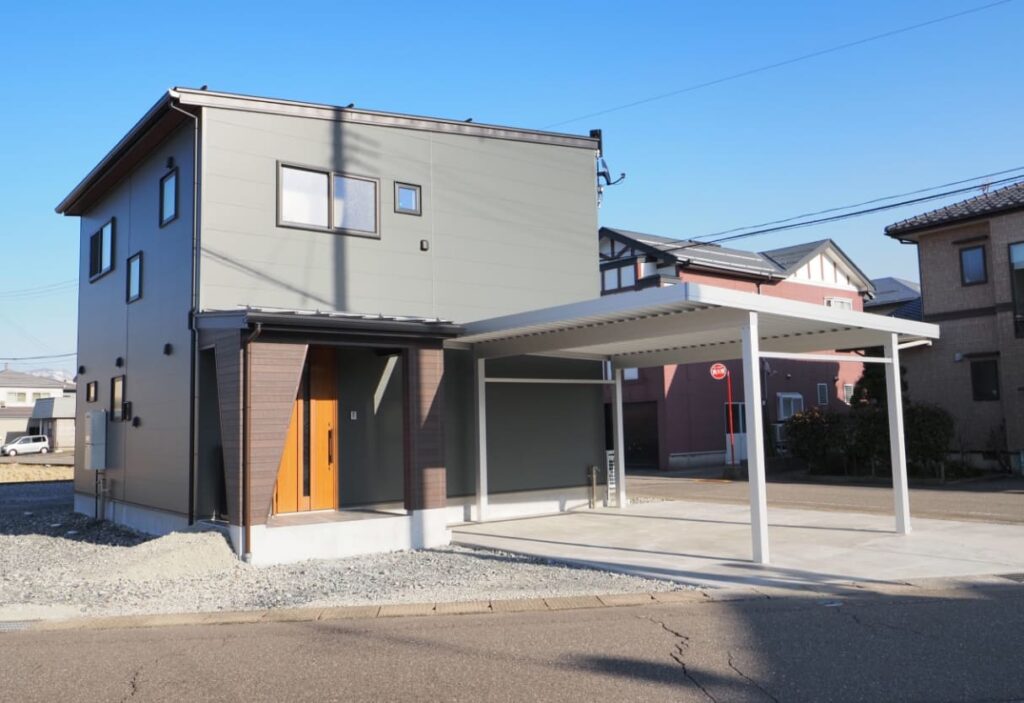 木のぬくもりに包まれる、ちょうどいい暮らし。シンプルでスタイリッシュな外観に、木の温もりを活かした心地よい室内空間。梁あらわしの天井が広がるLDKは、家族が自然と集まる居心地のよさ。使いやすさに配慮したキッチンや豊富な収納、屋根付きカーポートも完備し、暮らしやすさを細部まで追求しました。自然体で過ごせる、サイズ感と快適さを意識した住まいです。